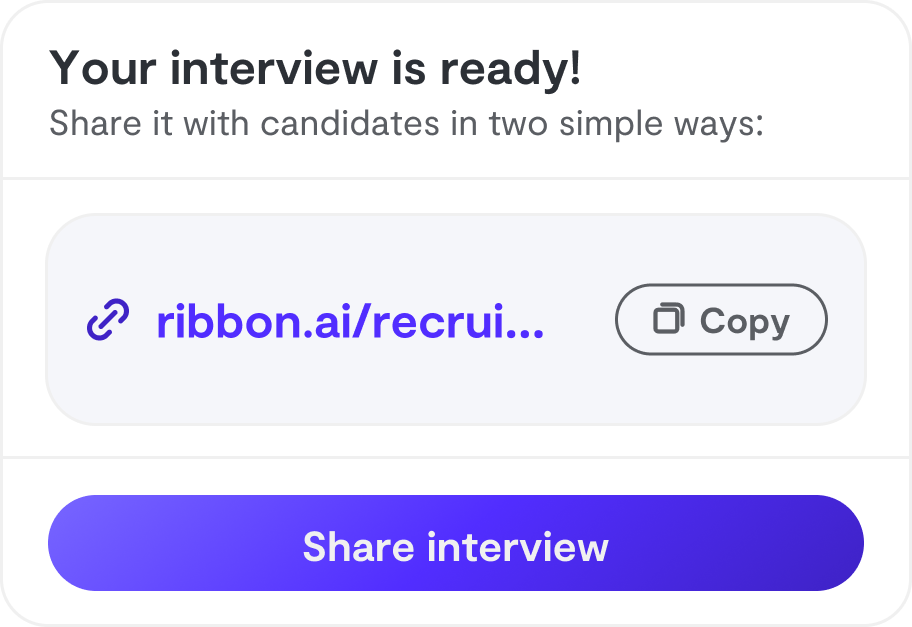"Ribbon's API is so easy to implement. It saved our team so much time and now we can supercharge our interviews to hire 60% faster!"